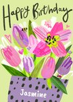 "Happy Birthday Jasmine". 'Jasmine' can be personalised!