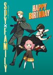 Featuring an illustration of three Spy x Family characters; Anya Forger, Yor Forger & Loid Forger.