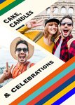 A bold and fun Birthday card featuring slanted, on-an-angle text and two photo upload areas with multi-coloured stripes going across the top and the bottom of the design.