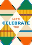 Front of card: A bold and colourful Birthday card featuring four simple diamond shapes with multi-coloured patterns inside of them which included stips and striped lines.
