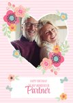 Striped And Flower Design Happy Birthday Photo Card - To My Wonderful "Partner"