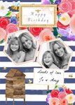 Stripes Honeycomb Frames And Beehive Personalised Photo Upload Happy Birthday Card