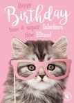 Studio Pets Cat Glasses Personalised Text Birthday Card