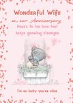 "Wonderful wife on our anniversary. Here’s to the love that keeps growing stronger, I’m so lucky you’re mine."