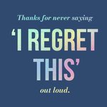 "Thanks for never saying 'I Regret This' out loud."
