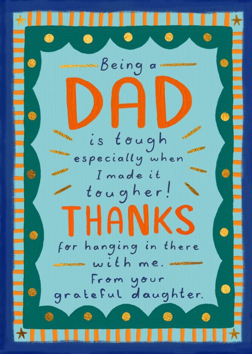 Text reads: "Being a Dad is tough, especially when I made it tougher! Thanks for hanging in there with me. From your grateful daughter."