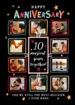 A multi-coloured card featuring 10 photo upload areas inside frames with editable anniversary date to accompany the "magical years together!" message.
