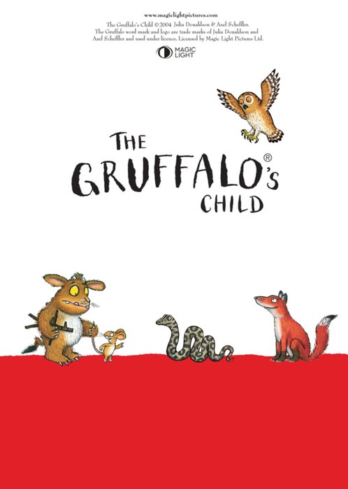 Front of card: Featuring an illustration of The Gruffalo and The Gruffalo's child. Text reads: "Jackson wishing you a very special Christmas". 'Jackson' can be personalised!