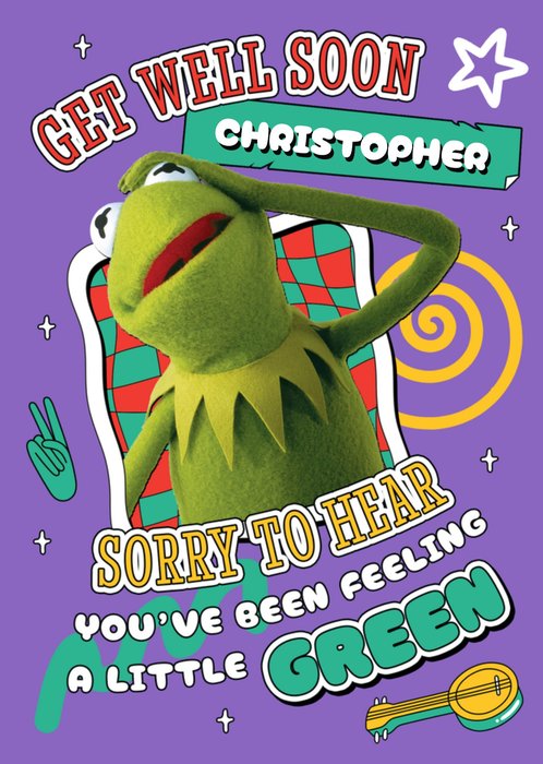 "Get well soon Christopher sorry to hear you've been feeling a little green." "Christopher" is editable.