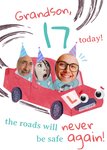 "Grandson 17 today! The roads will never be the safe again!". 'Grandson 17' can be personalised!