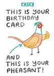 "Casey this is your birthday card and this is your pheasant". 'Casey' can be personalised!