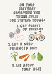 Three Rules For Staying Young Illustrated Birthday Card