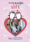 Featuring an illustration of two cute penguins and a heart shaped photo frame.
