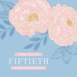 Traditional Illustration of Peony flowers. Text reads: "On your fiftieth anniversary"