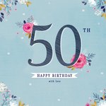 Typographic Design Floral 50th Happy Birthday With Love Card