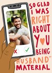 Typographic Funny So Glad I Was Right About You Being Husband Material Photo Upload Birthday Card