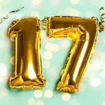 Typographic Golden Ballloon Seventeenth Birthday Card