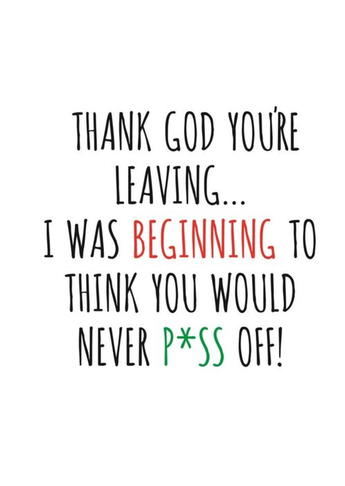 Typographical Thank God Your Leaving I Was Beginning To Think You Would Never Piss Off Card