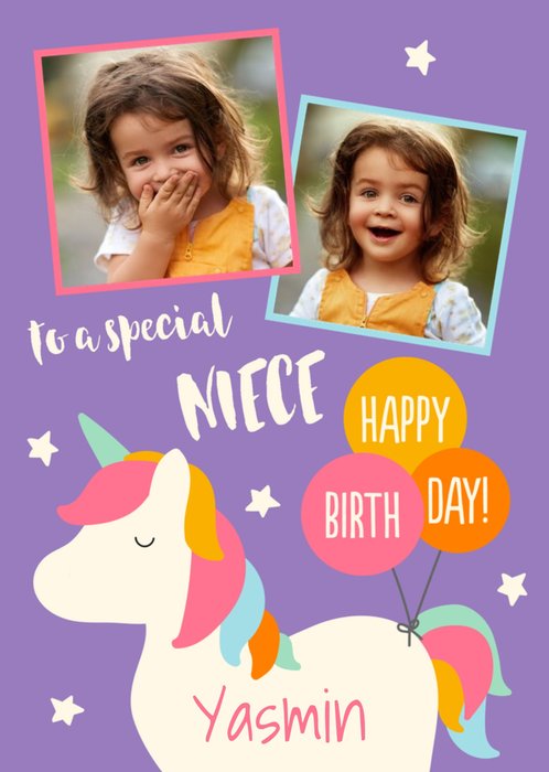 Unicorn To A Special Niece Happy Birthday Photo Upload Card