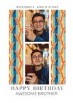 held in the V&A's National Art Library. Text reads: "Wonderful, kind & funny happy birthday awesome brother". 'Awesome brother' can be personalised!