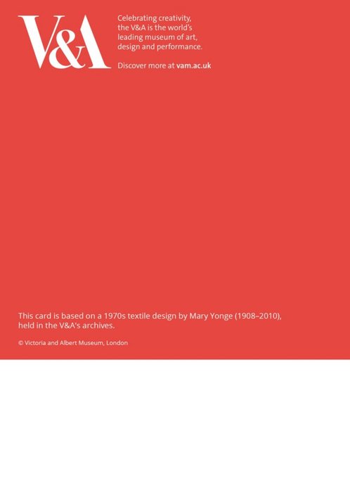 Front of card: V&A Vintage Photo Upload Birthday Card This card is based on a 1970s textile design by Mary Yonge (1908-2010),