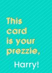 "This card is your prezzie, Harry!".'Harry!' can be personalised!