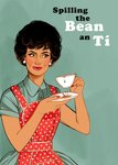 Vintage Illustrated Woman in Apron Spilling the Bean an Ti Card