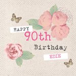 Vintage Roses And Fluttering Butterflies Happy 90th Birthday Card