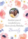 "Another year of wonderful you. Have a lovely Birthday Beverly"