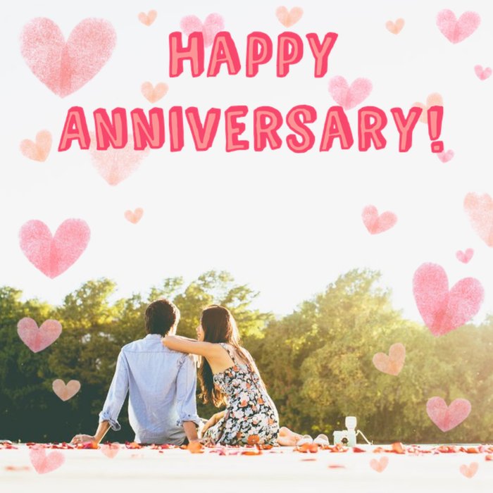 Watercolour Hearts Happy Anniversary Photo Card