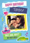"Happy Birthday Tommy! Why, God, Why? We had a deal!" The name can be personalised!