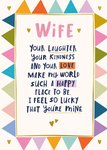 "Wife, your laughter, your kindness, and your love make my world such a happy place to be. I feel so lucky that you're mine."
