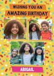 "Wishing you an amazing birthday Abigail". 'Abigail' can be personalised!