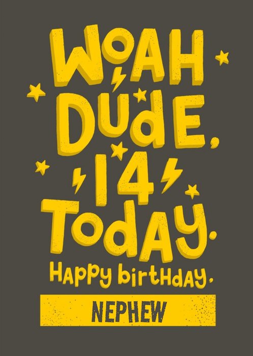Woah Dude 14 Today Typographic Birthday Card