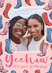 Yeehaw Cowboy Boots Photo Upload Birthday Card