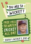 Text reads: "You are really 'wicket'! Free pass to watch cricket all day. Happy Father's Day."