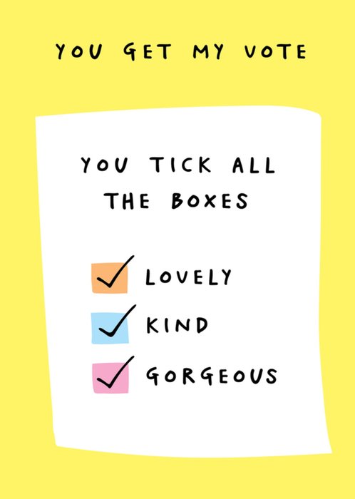 You Get My Vote You Tick All The Boxes Card