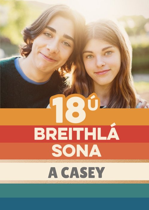 Zig Zag Striped Photo Upload 18ú Breithlá Birthday Card