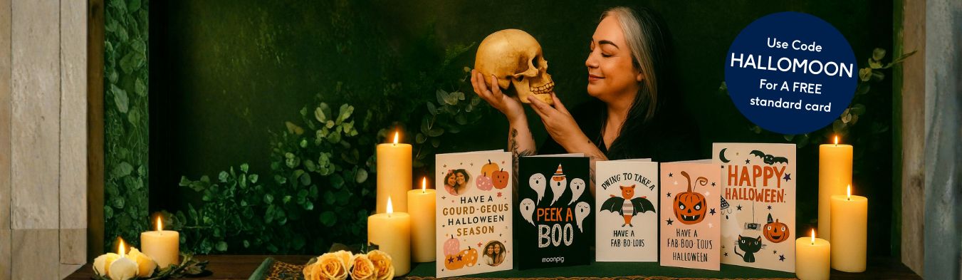 This Halloween, write your manifestation on a Moonpig card and send it to our Irish factory — where our witch will bless it in a Samhain-inspired ceremony.