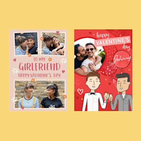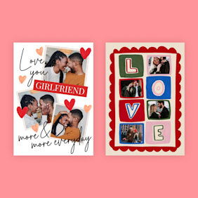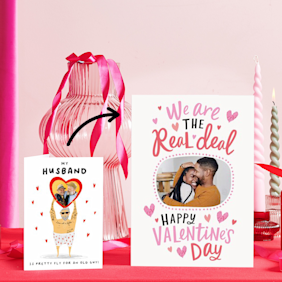 Love bigger this Valentine’s Day with our range of personalised Valentine's Day cards. Explore our hundreds of cute, romantic, rude, and funny Valentine’s Day cards, all available in standard & large sizes. Whether you're looking for a card for your girlfriend, bestie or mum and dad, we have a perfect Valentine's Day card designed just for them. If you need some inspiration on what to write in your Valentine's Day Card we have created some ideas for you here!