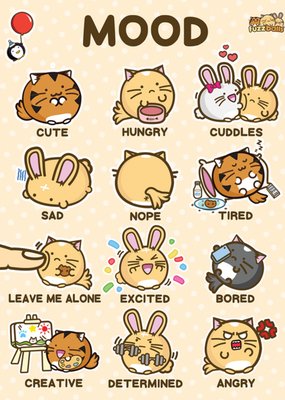 Fuzzballs Moods Illustrated Cuddly Cartoon Characters Birthday Card