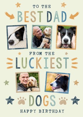 Sweet Best Dad Luckiest Dogs Print Textured Typography Photo Upload Birthday Card