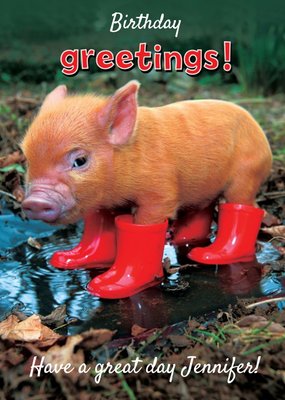 Little Pig In Boots Personalised Birthday Greetings Card