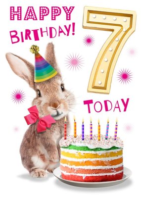 Cute Rabbit With Cake 7th Birthday Card