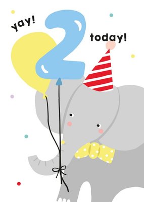 Illustrated Cute Elephant Party Hat Yay 2 Today Birthday Card