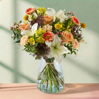 NEXT Bright Sunflower & Rose Bouquet with NEXT Floral Candle Gift Set