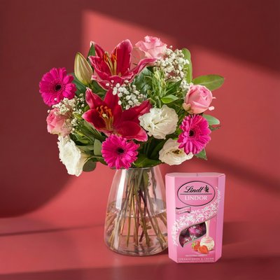 The Pink Blush with Lindt Strawberries and Cream Gift Set