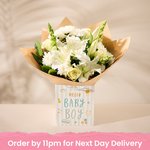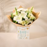 They've had a baby boy! Celebrate the arrival of their too-cute bundle of joy with this serene bouquet nestled inside a smile-worthy gift bag. With serene oriental lilies, roses, chrysanthemums and snapdragons, interlaced with sprigs of verdant eucalyptus robusta, we can't think of a better way to send the happy parents some love.