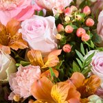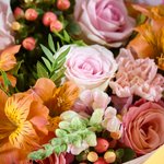 Packed with punchy orange antirrhinum, peachy hypericum and playful Miss Piggy roses, this bunch is full of personality. With soft pink roses, vibrant alstroemeria and fluffy carnations in the mix, it’s basically a party in petal form.