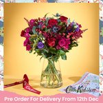 Deck the halls (and the mantelpiece) with this burst of Christmas cheer! Bold red roses and pops of purple lisianthus bring all the colour and joy of the season, wrapped up in true Cath Kidston style. It’s festive, fun and guaranteed to make spirits bright.